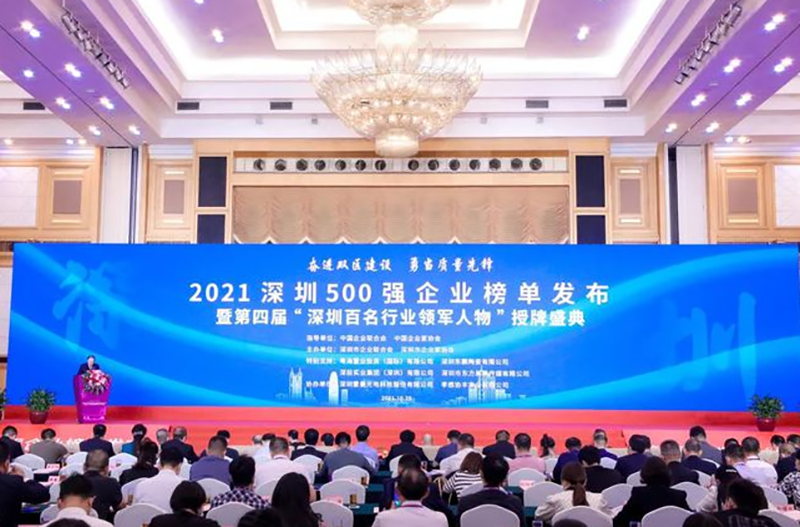 10月29日,“奮進(jìn)雙區建設 勇當質(zhì)量先鋒”2021深圳500強企業(yè)榜單發(fā)布暨第四屆“深圳百名行業(yè)領(lǐng)軍人物”授牌盛典在深圳五洲賓館舉辦。