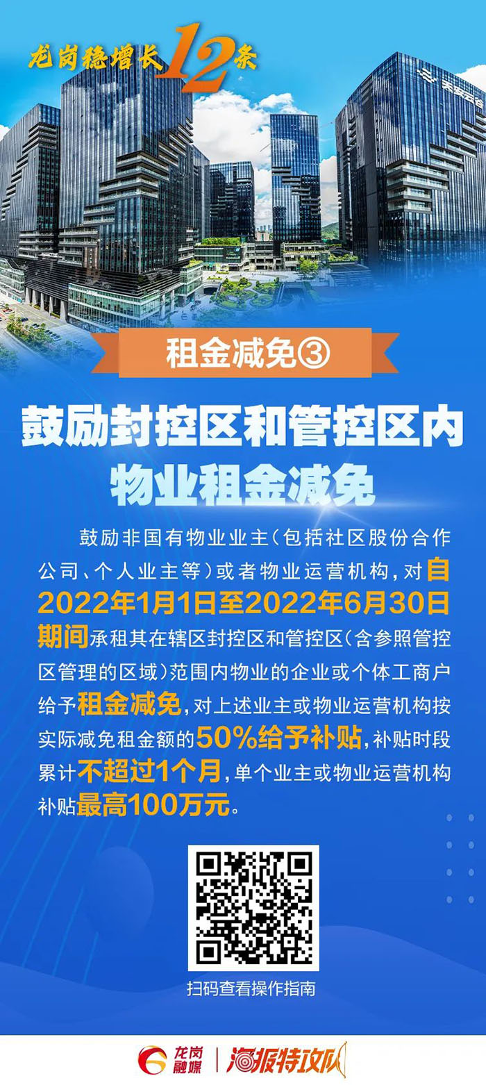 4.鼓勵寫(xiě)字樓、商場(chǎng)、商業(yè)綜合體、專(zhuān)業(yè)園區等各類(lèi)業(yè)主與租戶(hù)共克時(shí)艱,協(xié)商免租、減租、緩租。對南山區商業(yè)綜合體、購物中心、大型綜合性商業(yè)零售企業(yè)的經(jīng)營(yíng)管理主體符合條件的承租企業(yè)減免租金天數在半個(gè)月(含)以上的,按照2022年2月1日至3月31日期間減免租金總額的30%給予經(jīng)營(yíng)管理主體最高200萬(wàn)元的資金支持。(責任單位:區工業(yè)和信息化局)