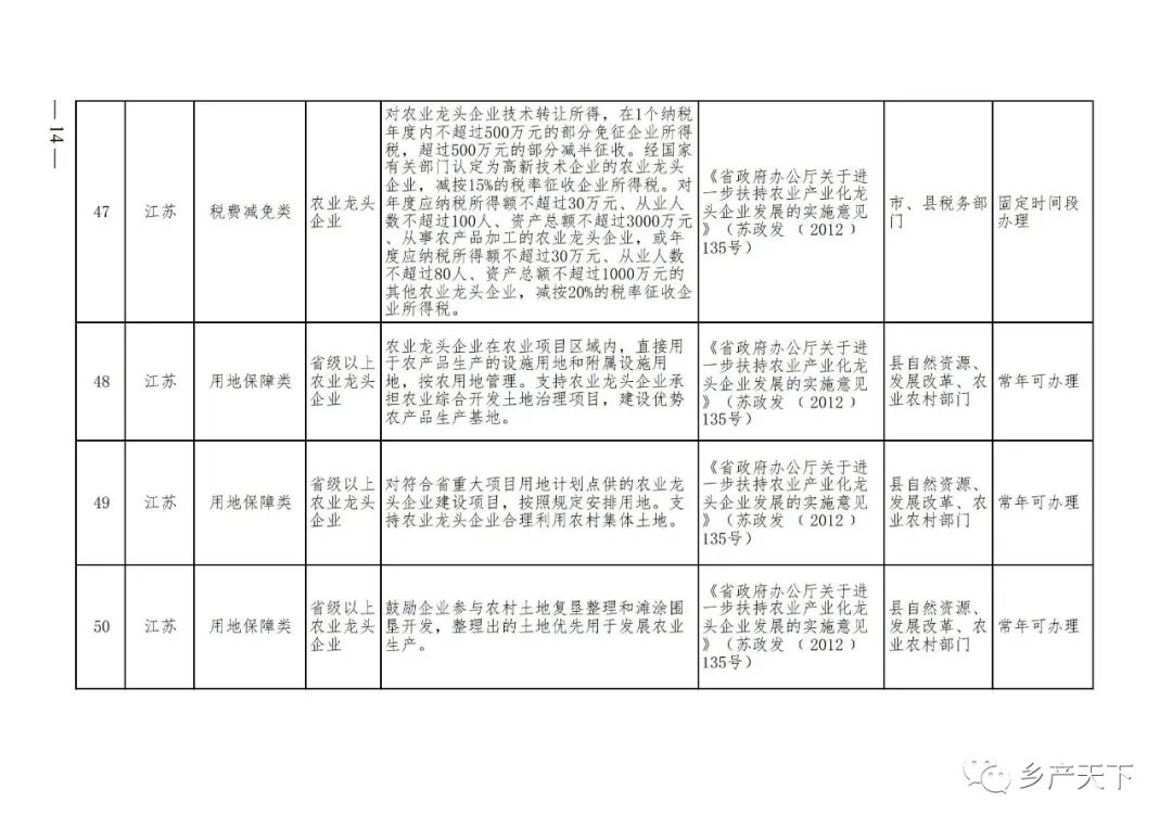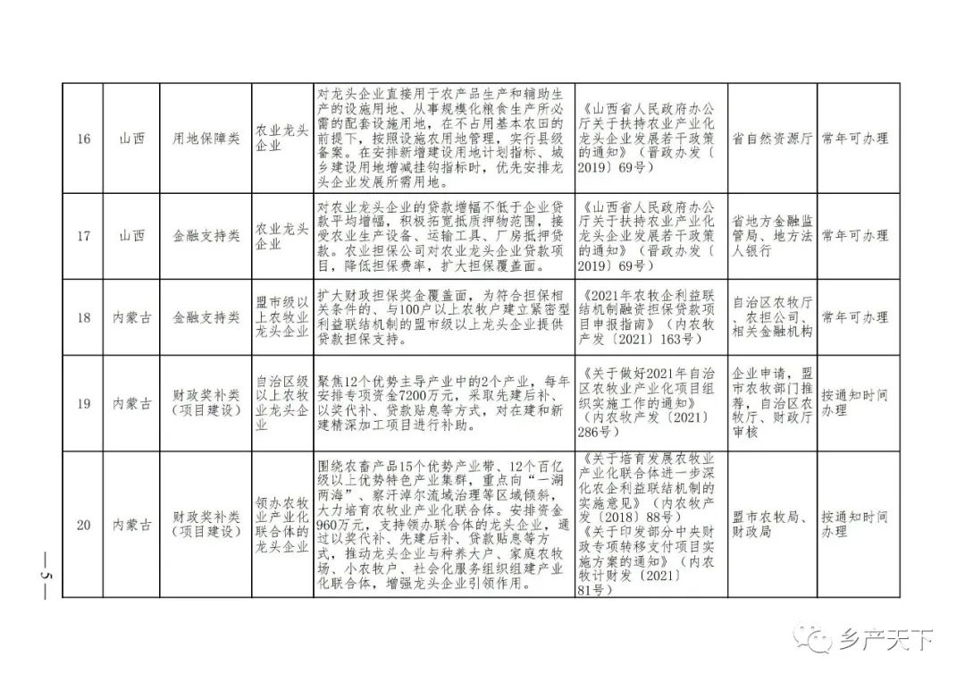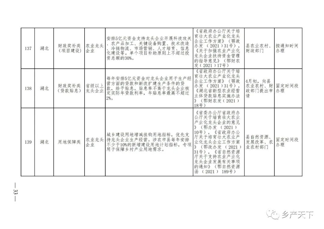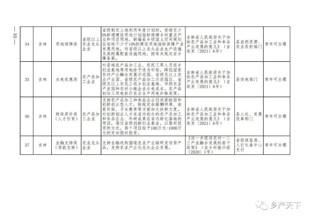 農業(yè)產(chǎn)業(yè)化龍頭企業(yè)支持政策清單