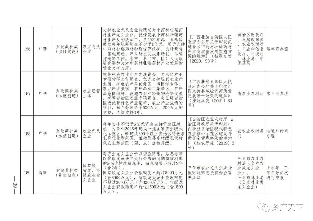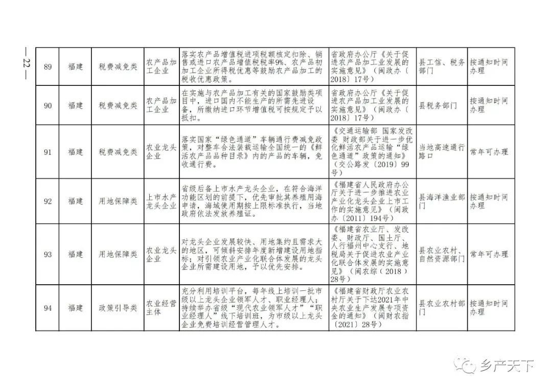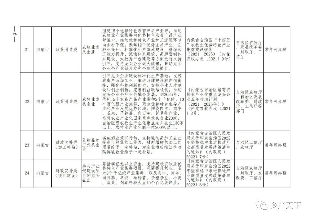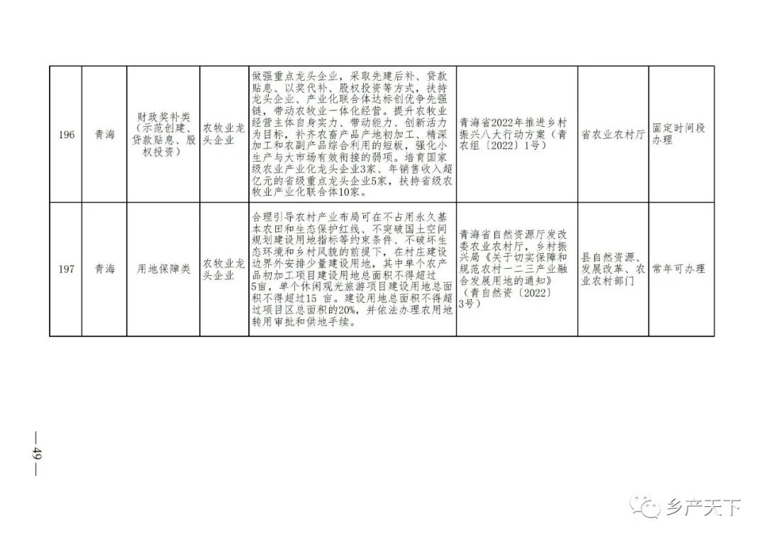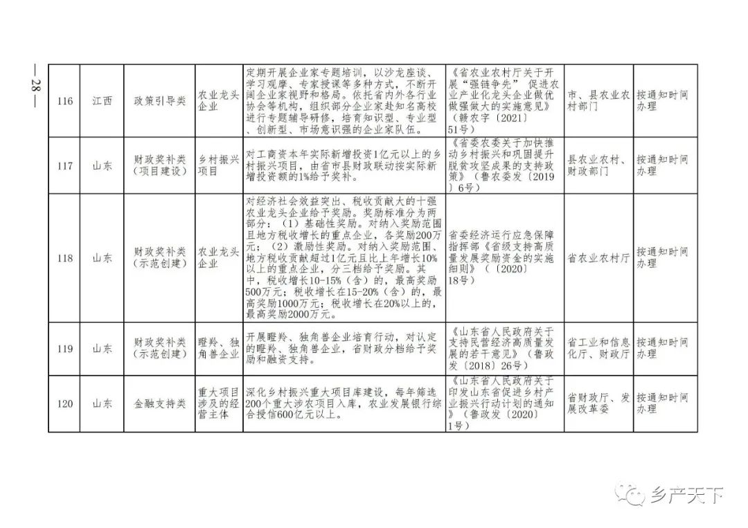 農業(yè)產(chǎn)業(yè)化龍頭企業(yè)支持政策清單