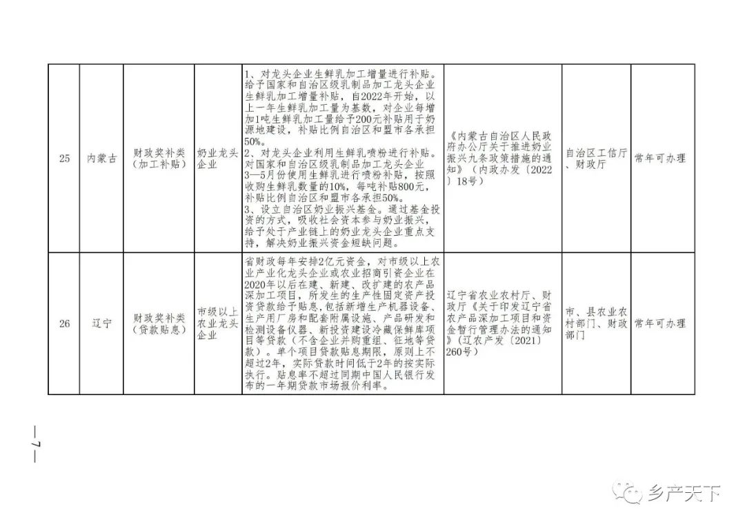 為加強對農業(yè)產(chǎn)業(yè)化龍頭企業(yè)的精準服務(wù),農業(yè)農村部鄉村產(chǎn)業(yè)發(fā)展司收集了各?。▍^、市)對龍頭企業(yè)的支持政策,于近期印發(fā)《農業(yè)產(chǎn)業(yè)化龍頭企業(yè)支持政策清單》(簡(jiǎn)稱(chēng)《清單》),供各地互相參考學(xué)習。